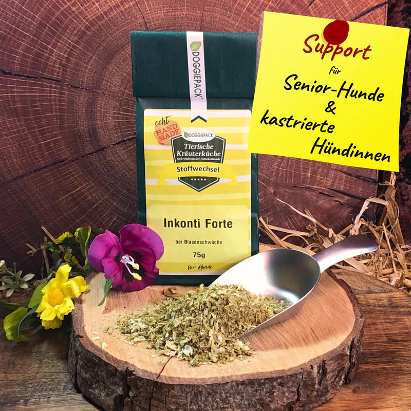 Ausgesuchte Kräutermischung zur ernährungsbedingten Stärkung der normalen Blasenfunktion von Hunden.